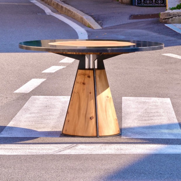 Tavolo in ferro e legno di cedro nato dalla collaborazione con Tommaso Giunchi. Al centro del tavolo una sezione di …