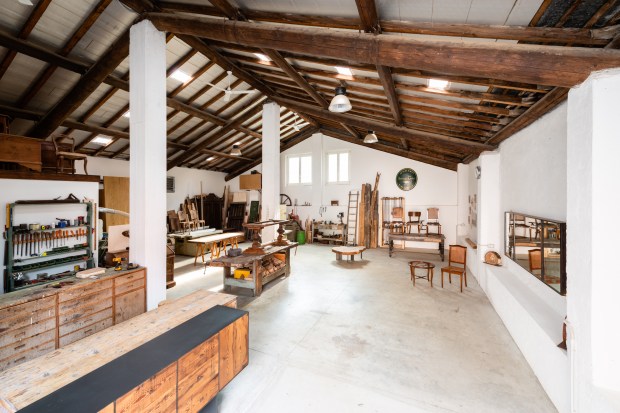 Legno centenario per questa libreria costruita con tecniche del passato senza una vite, solo incastri di legno.