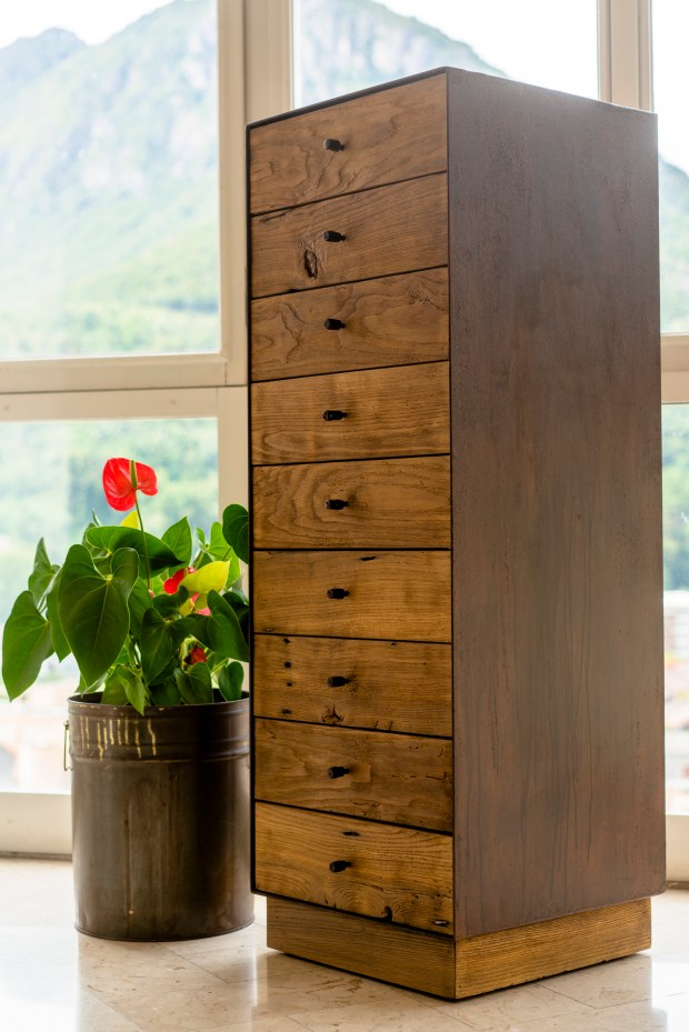 Cassettiera 9 cassetti in vecchio legno massello interno in multistrato di betulla. racchiusa da struttura in ferro. Pomoli recuperati da …