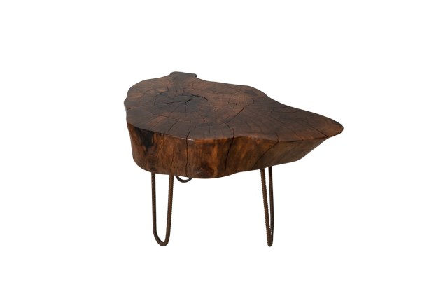 Tavolino in legno di cedro, trattato con la tecnica “Shou Sugi Ban” che prevedeva la bruciatura tramite fiamma