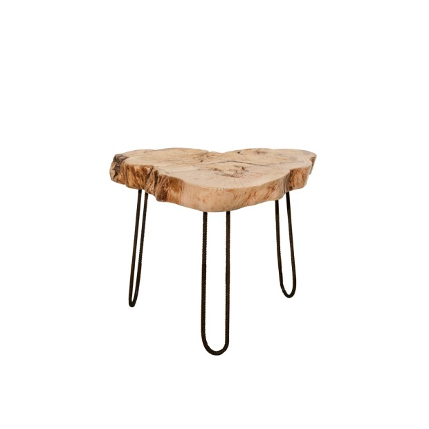 Tavolino in legno massello di faggio con gambe in ferro.