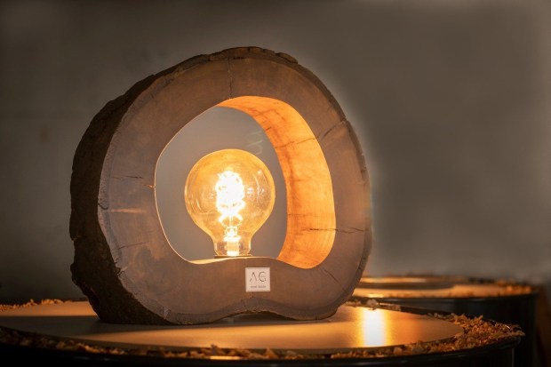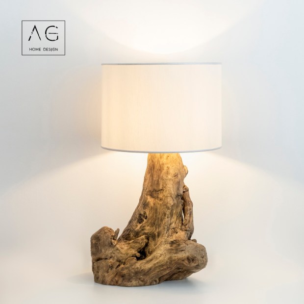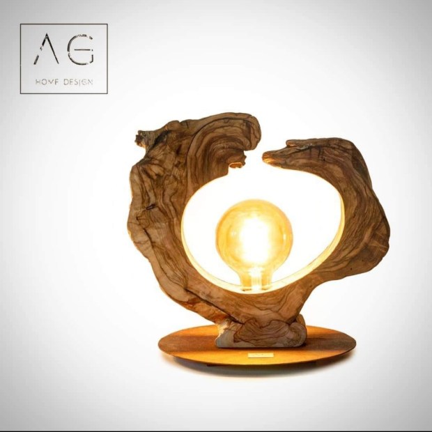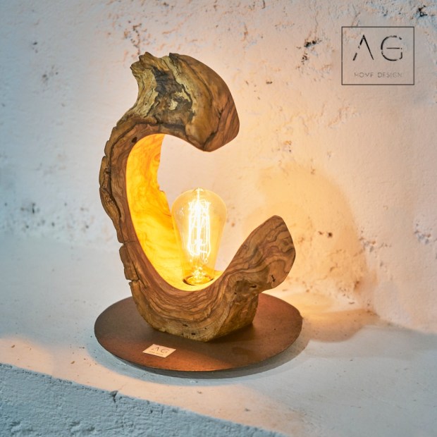 Lampada da tavolo in legno di ulivo