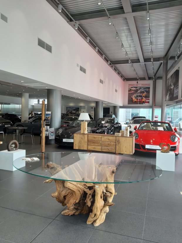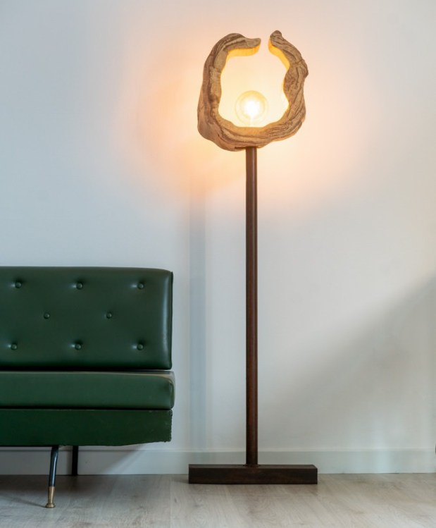 Lampada da tavolo in legno di ulivo.