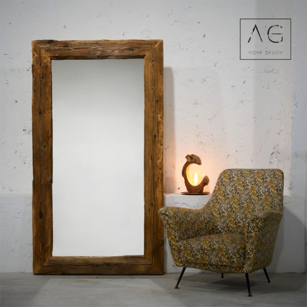 Grande Specchiera costruita con legno centenario di abete, pulito spazzolato e verniciato all’acqua.
